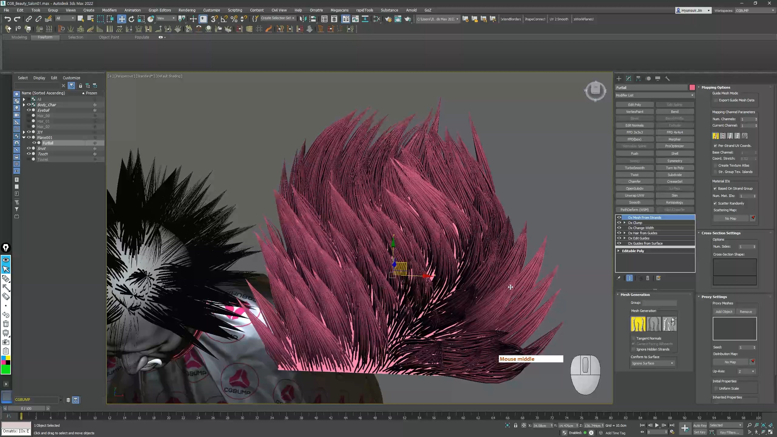 표현 할 Fur 와 Ornatrix 기능 매칭